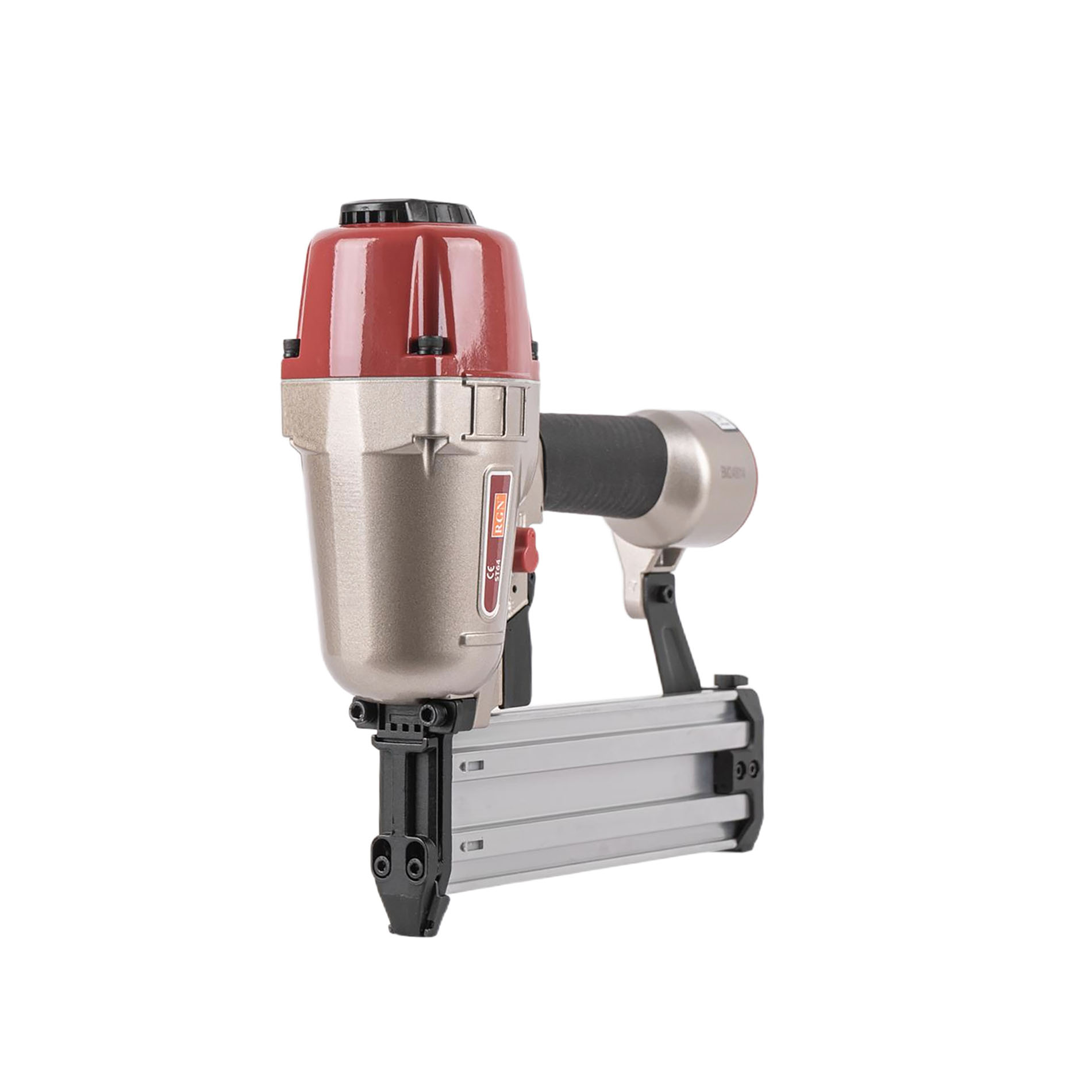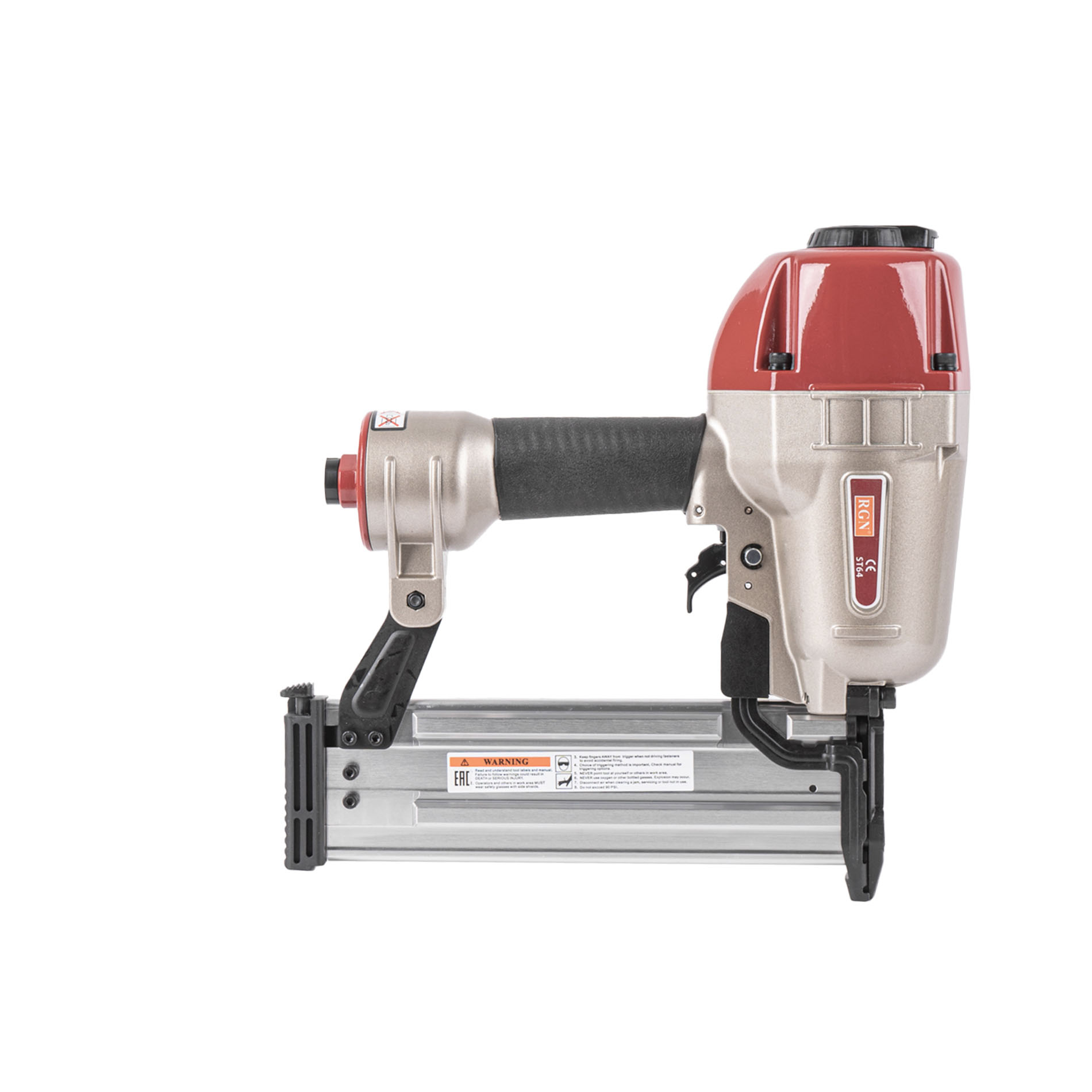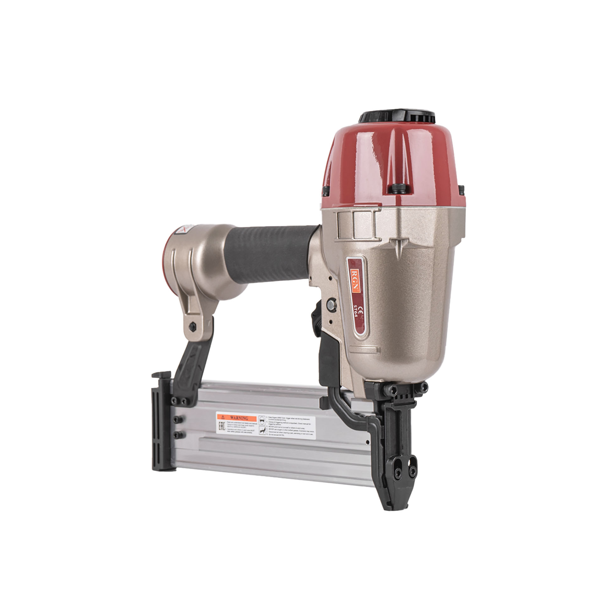 Пневмопистолет для забивания Т-гвоздей RGN ST64 по бетону отличается облегченным корпусом изготовленный из алюминиевого сплава. Данный нейлер пистолет характеризуется невысокой ценой при высоком качестве изготовления и эксплуатационого ресурса. Емкость магазина пневмопистолета - 50 T-гвоздей.