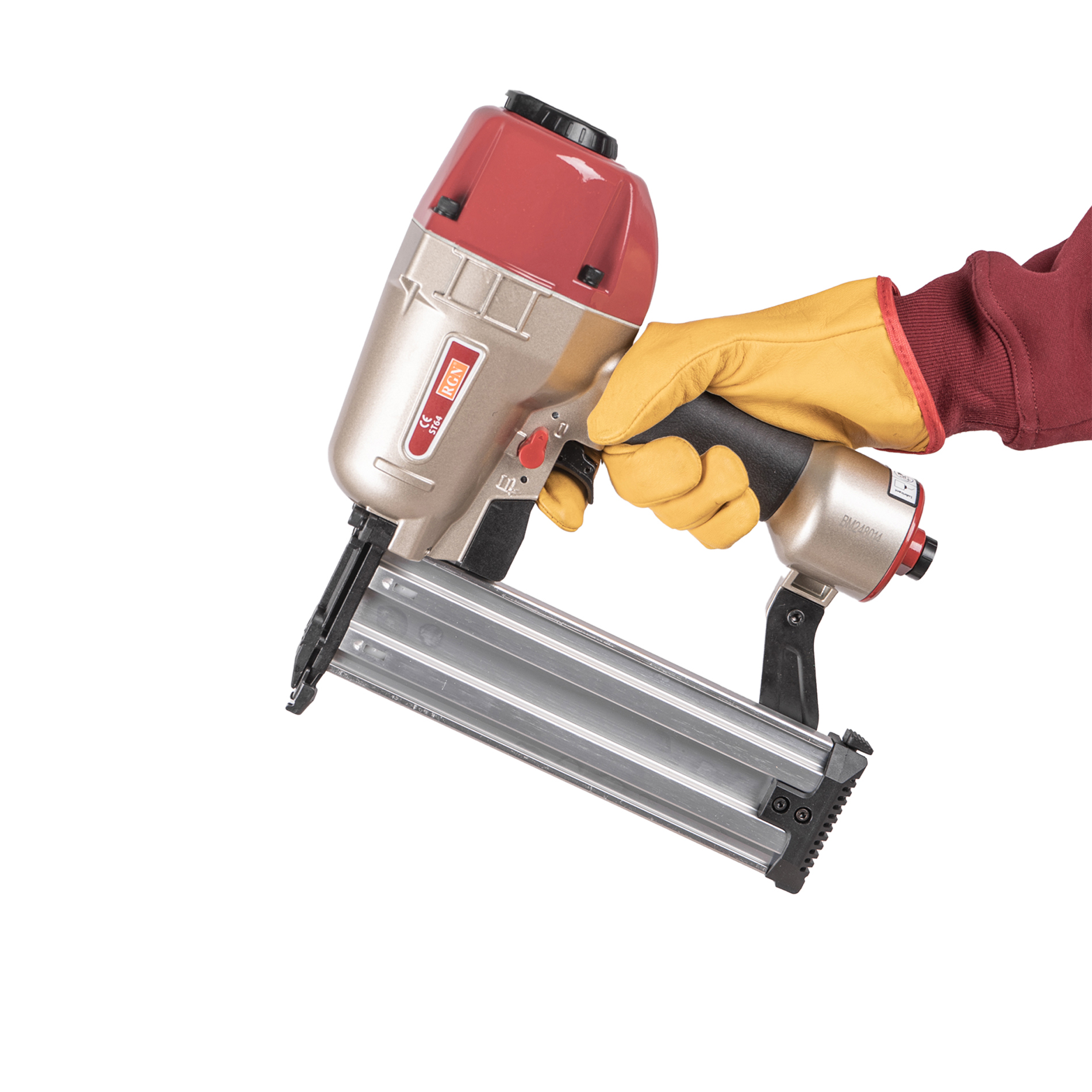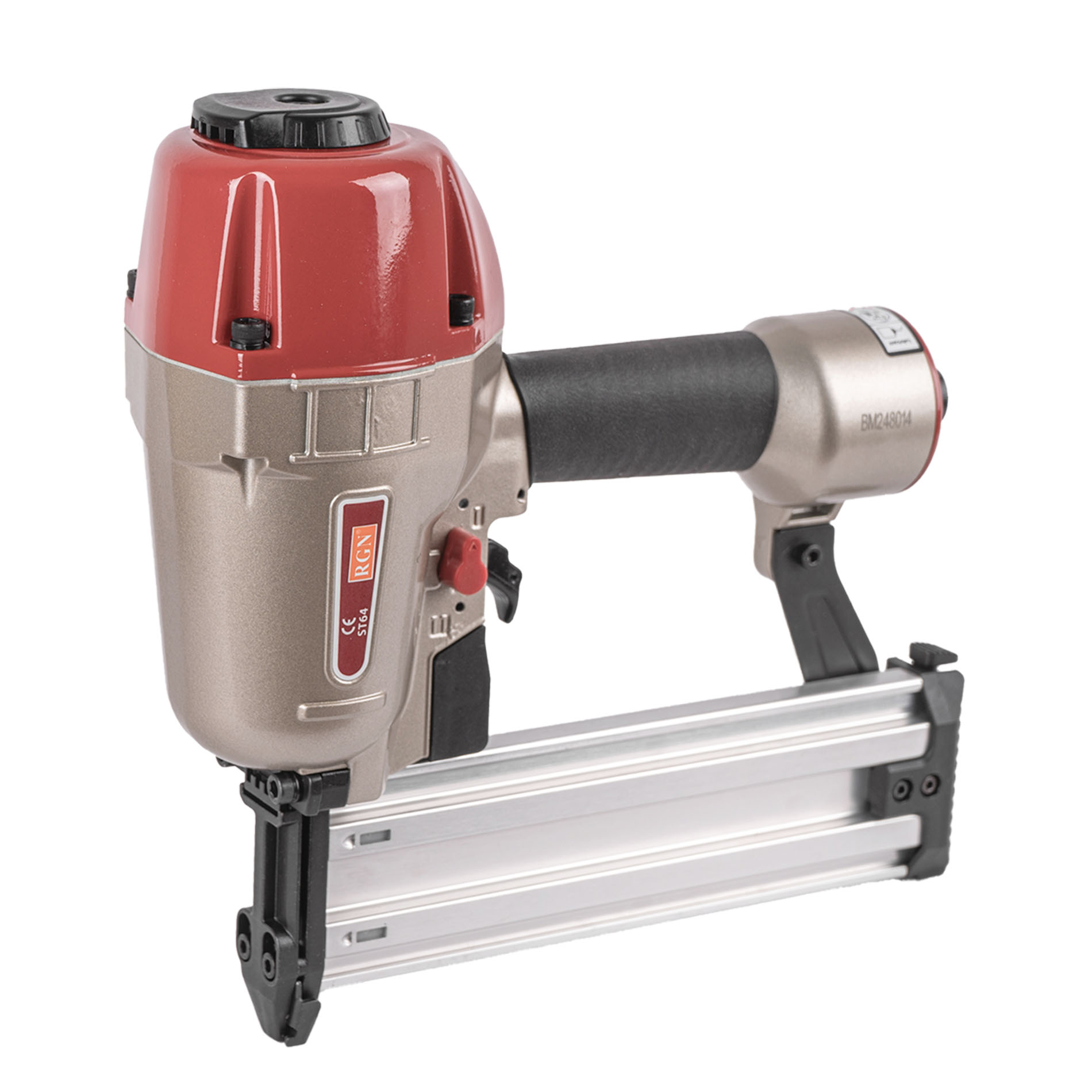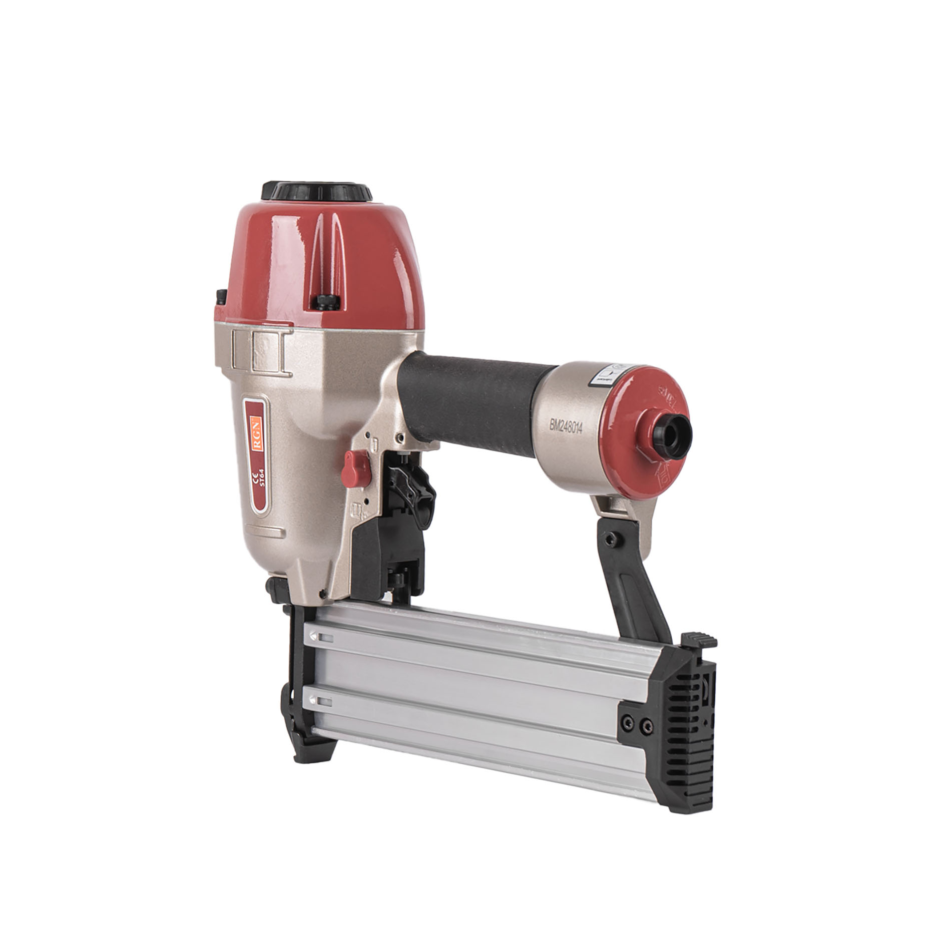 Пневмопистолет для забивания Т-гвоздей RGN ST64 по бетону отличается облегченным корпусом изготовленный из алюминиевого сплава. Данный нейлер пистолет характеризуется невысокой ценой при высоком качестве изготовления и эксплуатационого ресурса. Емкость магазина пневмопистолета - 50 T-гвоздей.