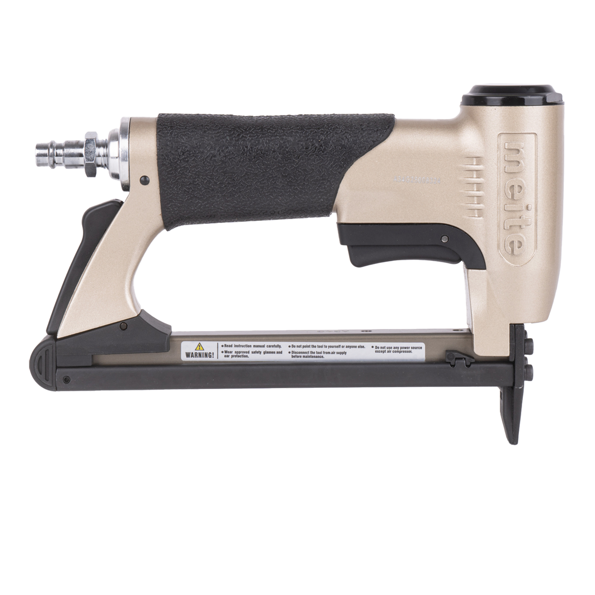 Обивочный пневматический степлер meite (майте) MT7116 GBA34G00301 - это профессиональный скобозабивной пневмопистолет для мебели. Идельно подойдет для обивки тканью на производство мягкой мебели. Использует скобу наименьшей толщины и применим для скорняжных работ. Используются мебельные обивочные скобы 22GA, тип 71 (V), Omer 3G, длина скобы 6-16 мм, ширина спинки скобы 9.1 мм, сечение проволоки 0.75x0.58 мм. За счет использования скоб более тонкого сечения Вместимость обоймы достигает 190 скоб, что позволяет реже менять обойму и экономить на крепеже. Небольшой вес, размеры и удобная эргономическая прорезиненная рукоятка делают эксплуатацию инструмента максимально комфортной и безопасной. Инструмент простой, надежный и крайне производительный, не требует специальных знаний и навыков. Наилучшее соотношение цены и высокого качества исполнения.